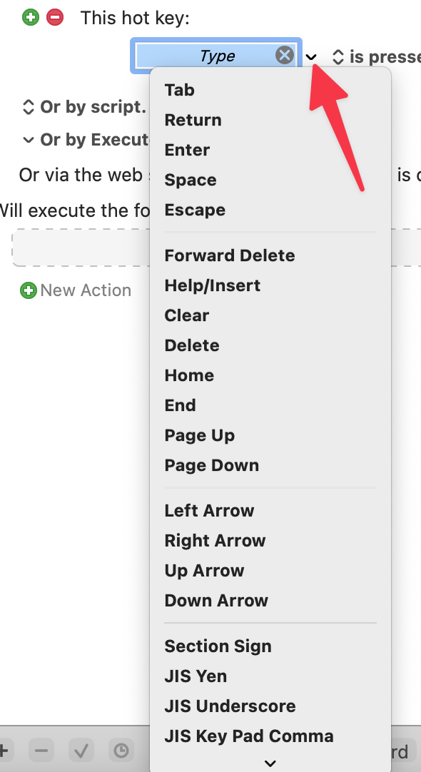 is pressed: Keyboard Maestro 监测特定键的按下事件。